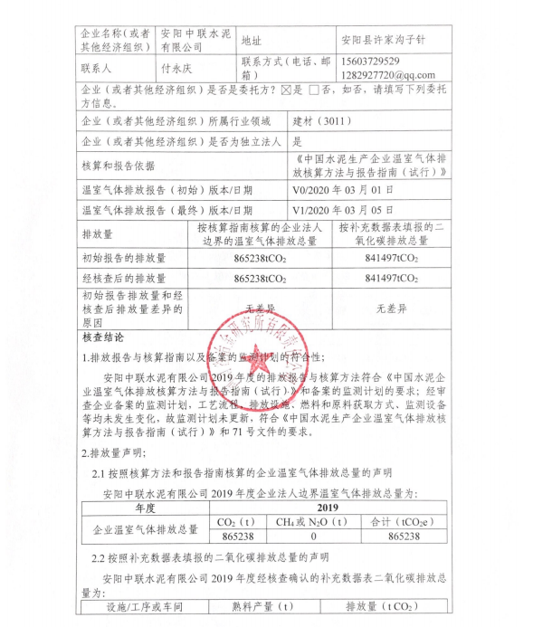 2019年度温室气体排放检查报告